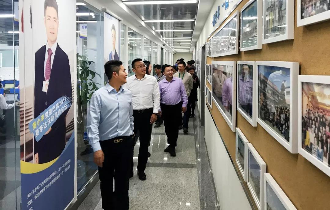 随后黄总陪同会员单位代表在公司大事记展板、荣誉展台、照片墙和开放式办公区进行了参观。